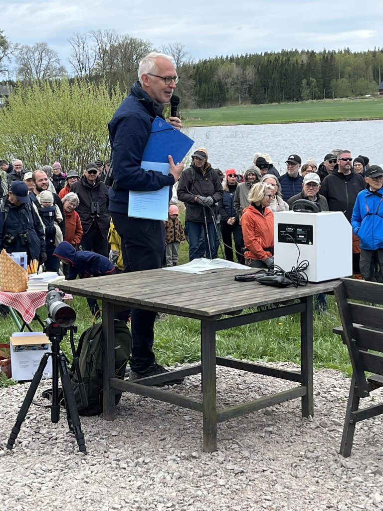 En blåsig dag i maj samlade omkring 200 personer för att inviga den ny-gamla Tomtasjön. Projektledare Sören Eriksson berättade om det två år långa arbetet med att återskapa den gamla sjön. Målet har varit att gynna djur- och fågelliv och redan har omkring 180 fågelarter letat sig dit! Vi fick också höra Lars-Eriks Karlsson från Rasbo hembygdsgille berätta om hur markägare under 1800-talets slut utdikade sjöar för att ge mat åt en hungrande befolkning. Andreas Persson, en av alla fågelskådare som besöker Tomtasjön, berättade vidare om glädjen och fascinationen av att vara fågelskådare, och om de fågelobservationer som gjorts vid Tomtasjön under våren och att man i IT-systemet Artportalen kan man söka efter de fågelarter som observerats där. Invigningen avslutades som sig bör med att markägarna Christer Pettersson, Mats Pettersson och Rune Pettersson klippte banden och en ny sjön och ett nytt rekreationsområde var invigt. Efter lite korv tog sig de flesta sig runt den 4 km långa gångstigen runt sjön och försökte svara på den minst sagt kluriga tipspromenaden. Ett fint samarrangemang mellan Tomta sjöförening och Rasbo hembygdsgille!